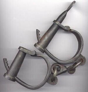 old cuffsThe adverts were a bit more entertaining. You could buy your own hand-cuffs. Not the huge metal shackles I was issued that were new in 1920, but flash stainless steel jobs that were ‘easy to put on’, ‘ratchet-closed’, lightweight, and cost a week’s bloody wage. You could get your uniform tailored by the same firm that advertised Masonic regalia. “Save time,” I thought. “Have your masonic pinny attached to the inside of your tunic and just pull it out over your trousers if you feel the need for a quick lodge meeting in the back of the police van with others of your ilk.”
